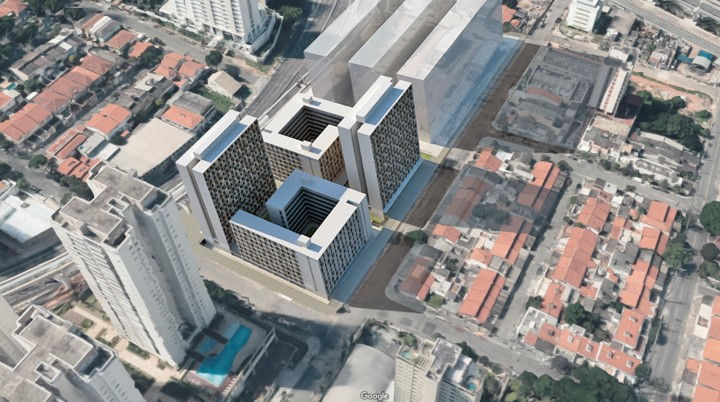 -Potencial de ocupação do terreno: 324 uhs inicial – revisado para 502 uhs  em dois condomínios com 251 uhs cada